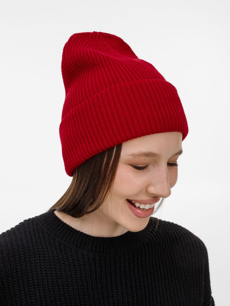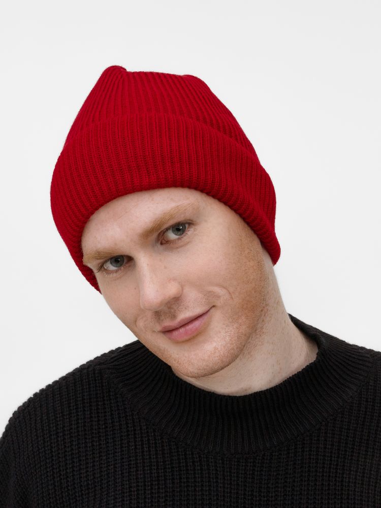 Удлиненный силуэт шапки Nobilis Mono из мягкой полушерстяной пряжи с широким отворотом создает стильный современный образ, а фактурная вязка добавляет объем и выразительность.