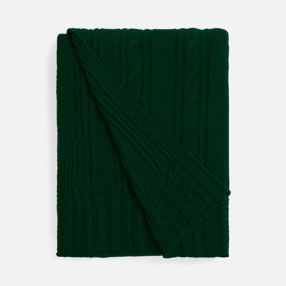 Тонкое переплетение вертикальных кос-жгутов создает благородный стиль, где простота линий встречается с изысканной рельефной текстурой. Плед из мягкого акрила сохраняет тепло, оставаясь удивительно легким и воздушным.