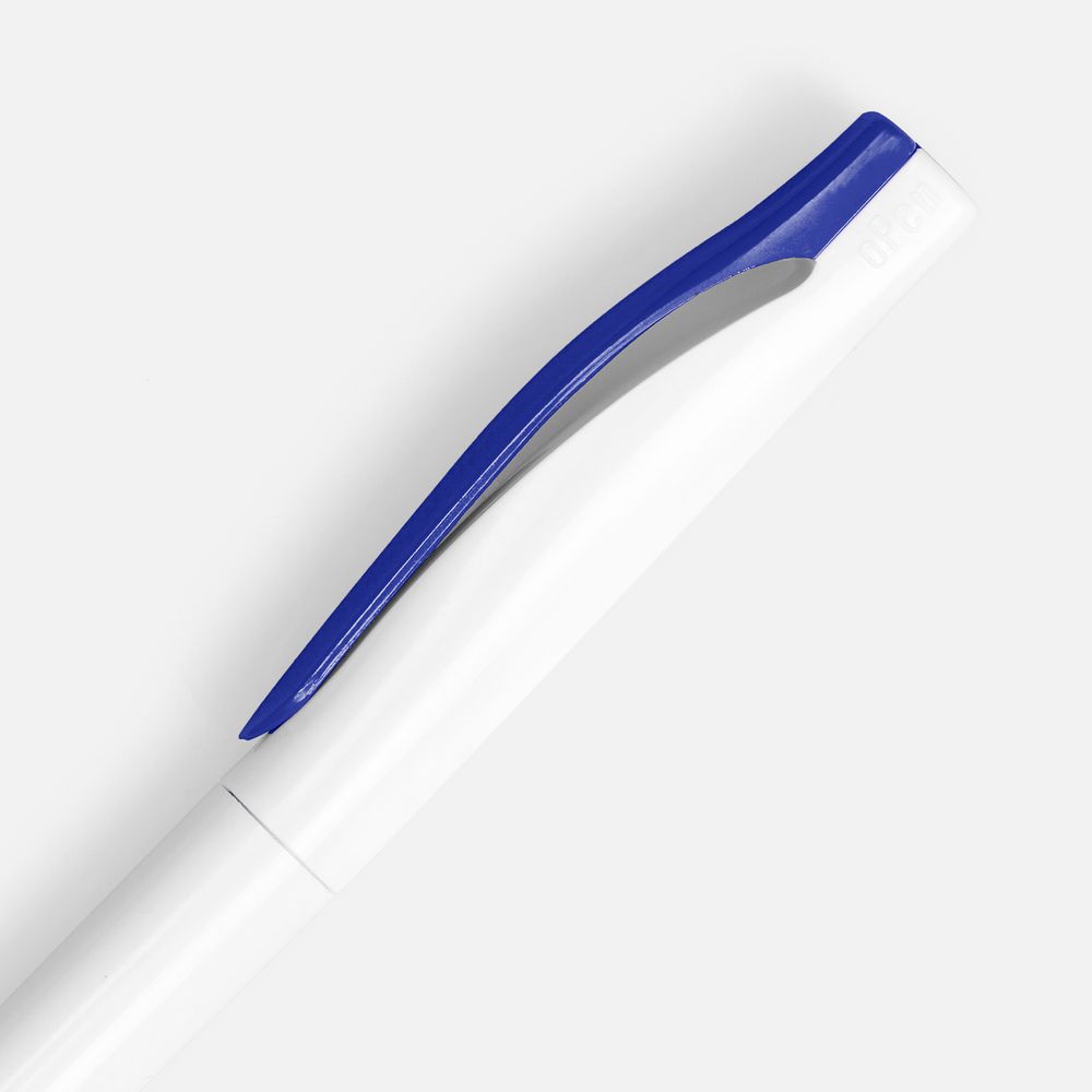 Корпоративная одежда с логотипом Корпоративные подарки на Новый год Спортивные товары с логотипом Съедобные корпоративные подарки с логотипом Элементы брендирования и кастомизации Ручка шариковая Pin, белая с синим