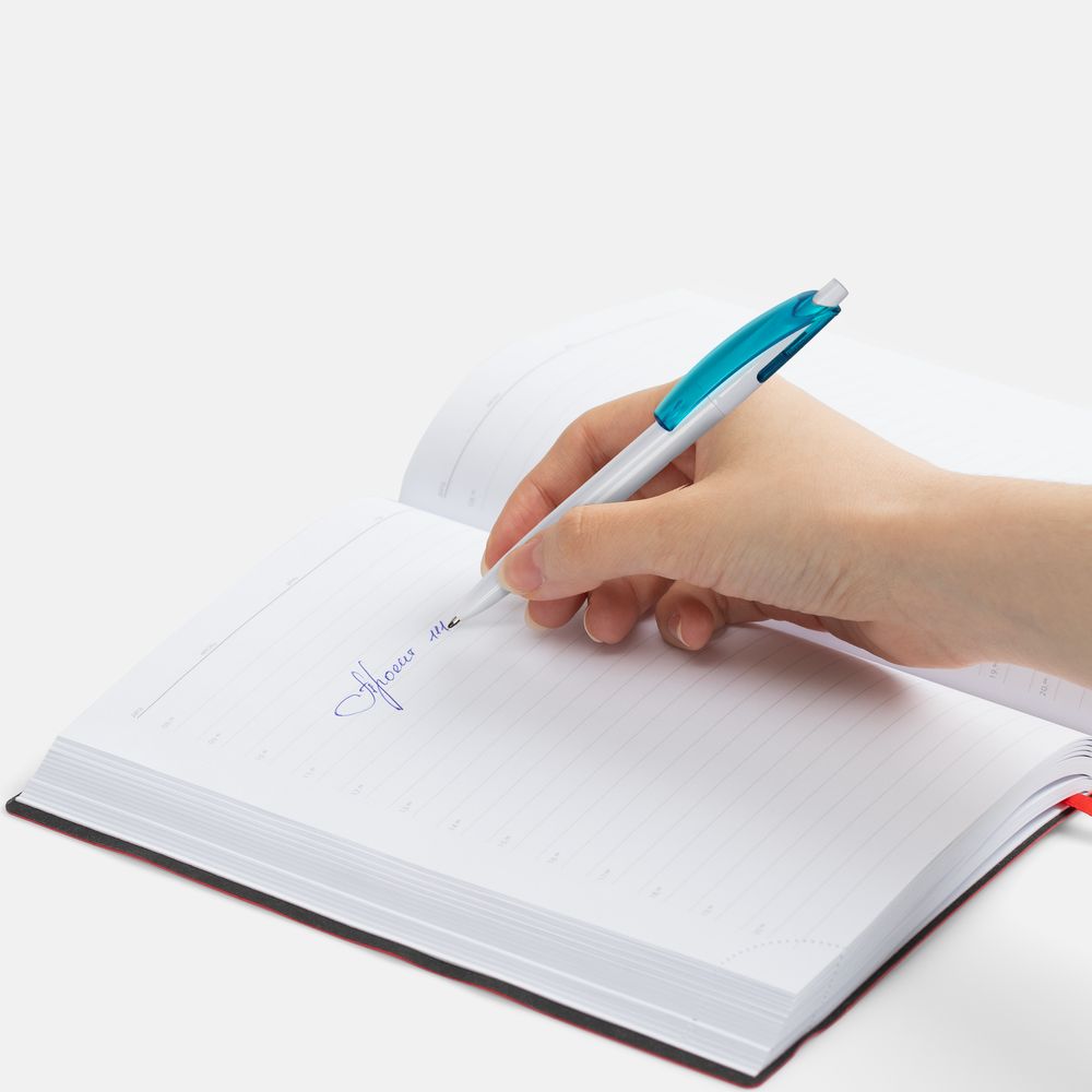 Корпоративная одежда с логотипом Корпоративные подарки на Новый год Спортивные товары с логотипом Съедобные корпоративные подарки с логотипом Элементы брендирования и кастомизации Ручка шариковая Bento, белая с голубым