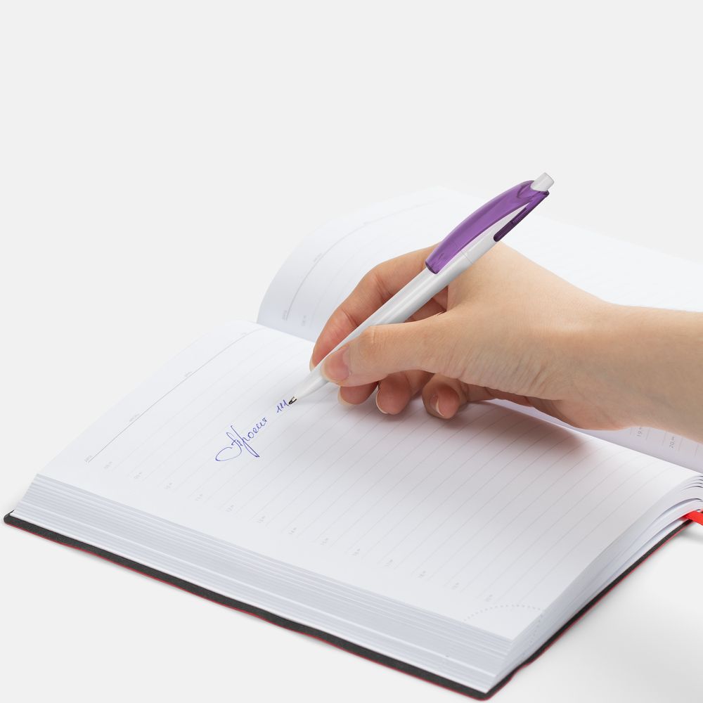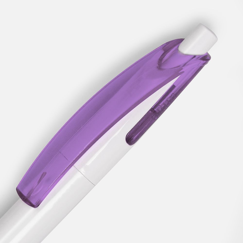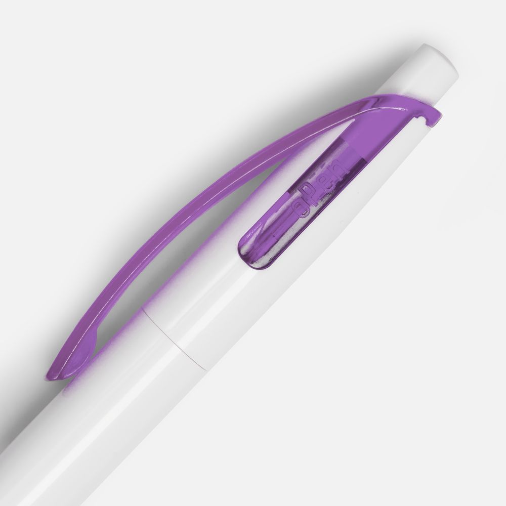 Корпоративная одежда с логотипом Корпоративные подарки на Новый год Спортивные товары с логотипом Съедобные корпоративные подарки с логотипом Элементы брендирования и кастомизации Ручка шариковая Bento, белая с фиолетовым